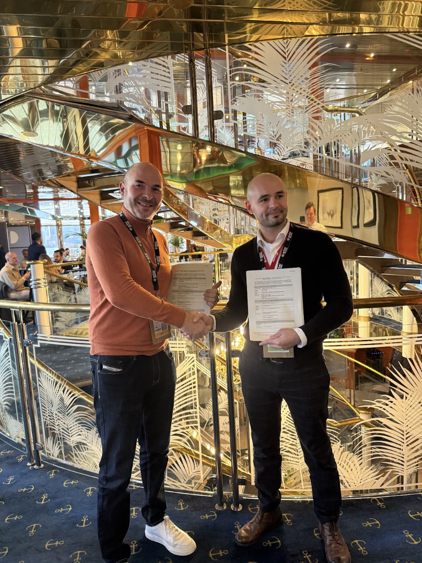 James Lewis, de Holiday Extras, et Costin Anghel Dogaru, de Corendon Airlines