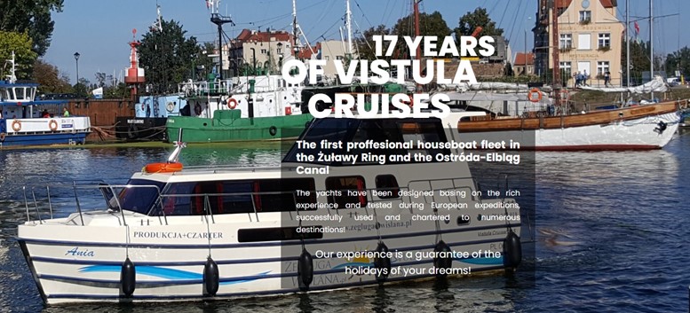 L’objectif de Vistula Cruises est d’offrir aux personnes ordinaires, aux amateurs d’eau et à ceux qui n’ont jamais eu de contact avec le monde nautique, la possibilité d’explorer les voies navigables intérieures de la Pologne depuis le pont d’un houseboat — un yacht à moteur facile à manœuvrer — garantissant à la fois confort, sécurité et de nombreuses expériences inoubliables !