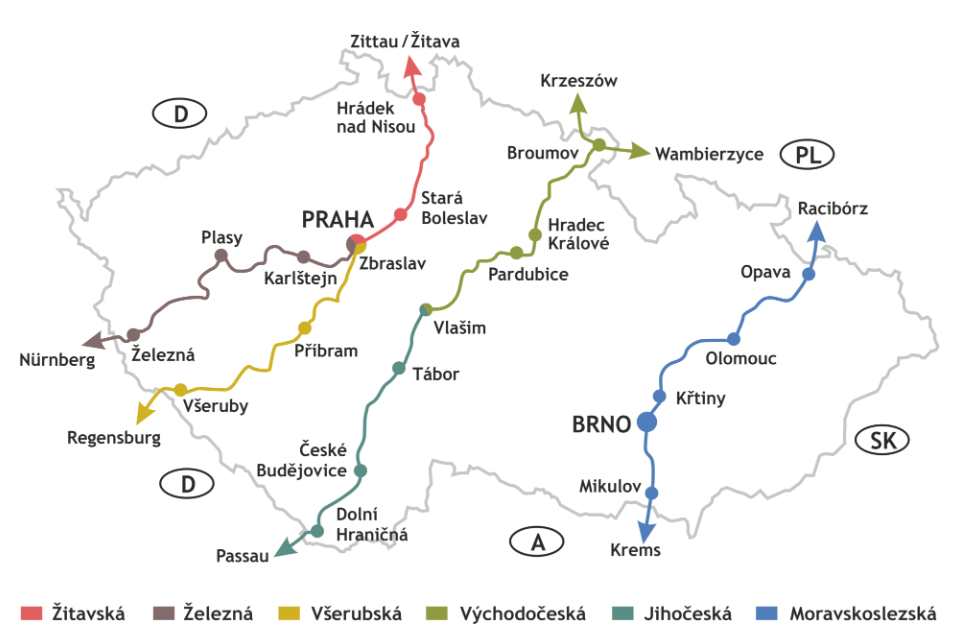 Andere interessante plaatsen langs de route zijn Pardubice en Kutná Hora. Pardubice staat bekend om zijn traditionele peperkoek en de paardenrace Velká Pardubická. In Kladruby nad Labem bevindt zich een eeuwenoude stoeterij, die eveneens op de UNESCO-werelderfgoedlijst staat.