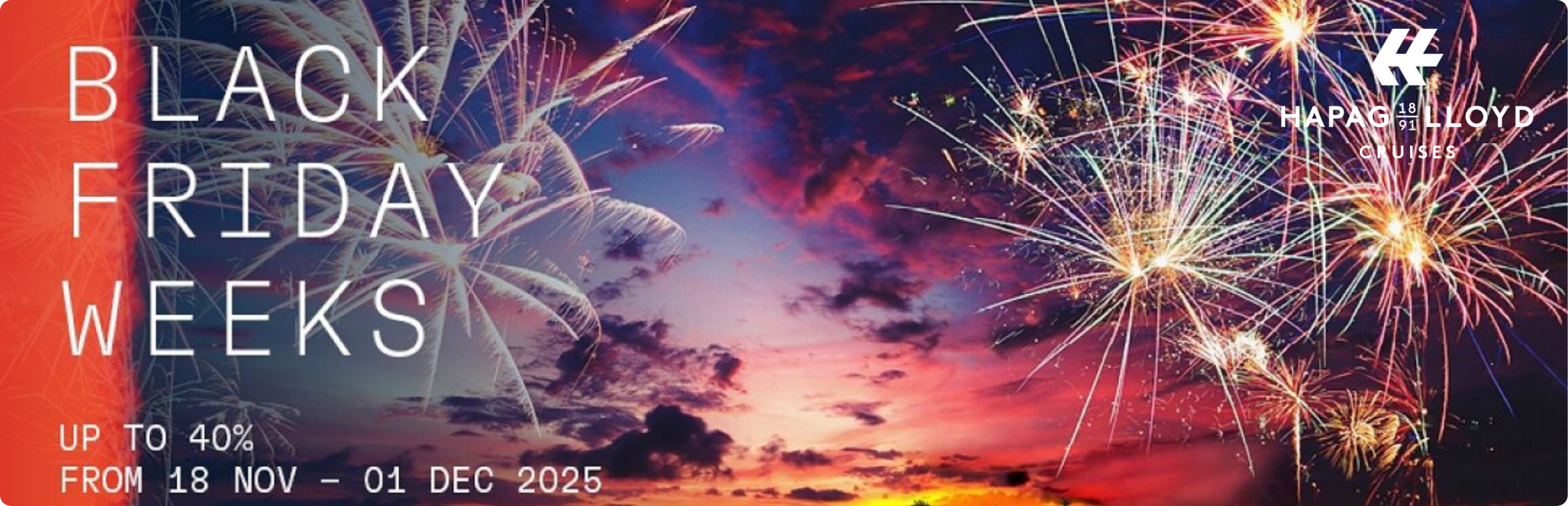 Van 18 november tot 1 december 2025 krijgen klanten tot 40 % korting op het SILVER-tarief (dubbele en enkele bezetting, afhankelijk van beschikbaarheid) op 24 geselecteerde cruises.