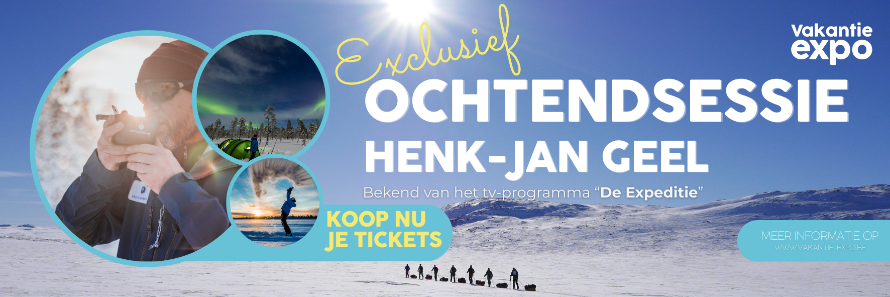 SPECIAL: Exclusieve ochtendsessie met expeditieleider Henk-Jan Geel ![]() Voor het eerst ontvangt Vakantie Expo de Nederlandse avonturier en IPGA-Polarguide Henk-Jan Geel, bekend van het televisieprogramma "De Expeditie". Tijdens een unieke ochtendpresentatie, op zaterdag en zondag - van 09:00 tot 10u00, neemt hij bezoekers mee naar het Hoge Noorden met inspirerende verhalen, spectaculaire beelden en persoonlijke inzichten uit zijn expedities. Meer informatie: https://vakantie-expo.be |