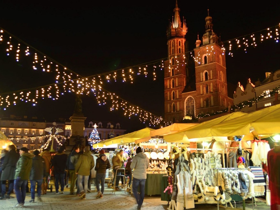 De oudste en beroemdste kerstmarkt van het land is die van Krakau, die plaatsvindt op de Grote Markt van de Oude Stad (28 november – 1 januari 2026). Tussen de fonkelende lampjes en de historische Lakenhal proef je Galicische glühwein en traditionele Poolse gerechten. Ook Warschau heeft een sfeervolle markt op het Plein van de Defiladen (21 november – 6 januari 2026), met handwerk, warme dranken en de spectaculaire kerstverlichting langs de Koninklijke Route en het Wilanów-paleis, waar duizenden lampjes ’s avonds een sprookjesachtige sfeer creëren.