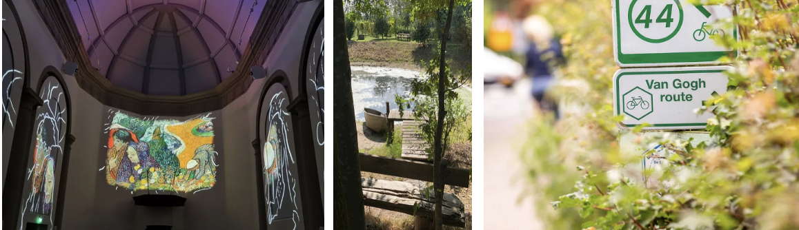 Wie liever de regio actief verkent, kan gaan voor de 'Van Gogh Fietsroute Etten-Leur Zuid' (29 km). De tocht slingert langs vijf Van Gogh-monumenten door boomgaarden akkers en dorpjes die Van Gogh zelf inspireerden. Onderweg brengen audioboxen zijn schetsen en citaten tot leven.