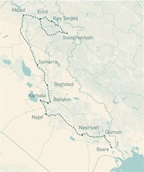Route van de rondreis door Irak